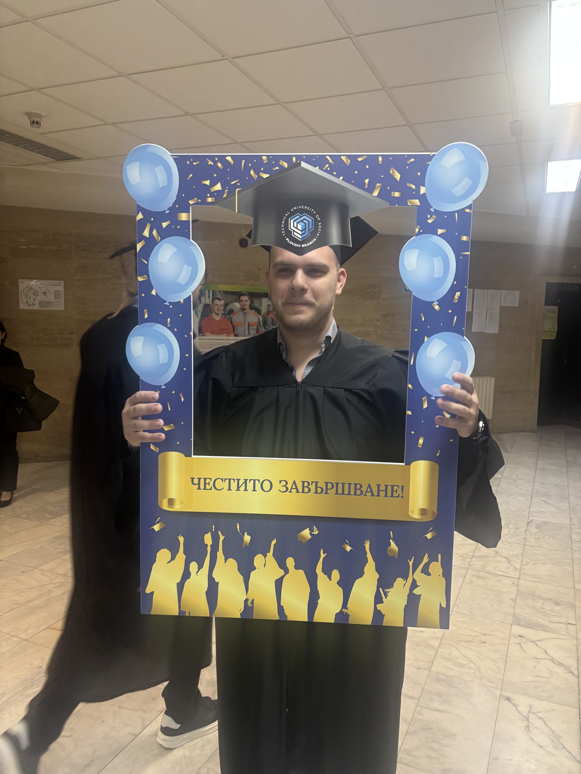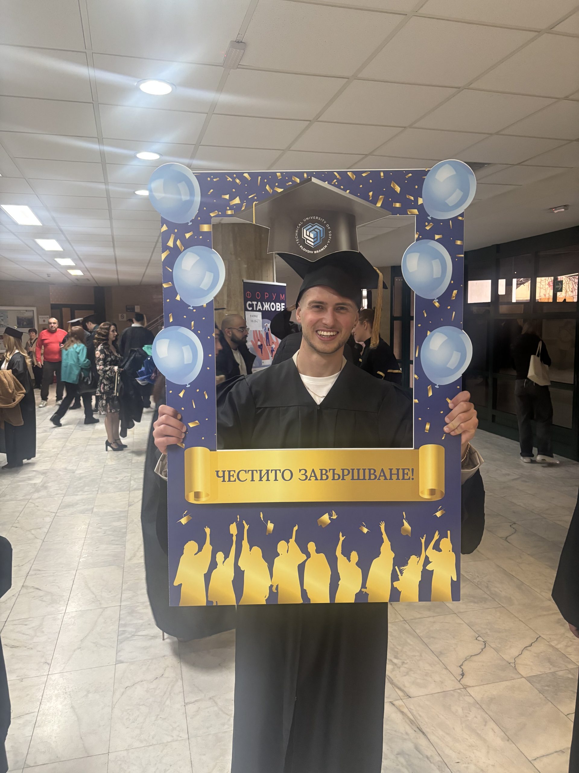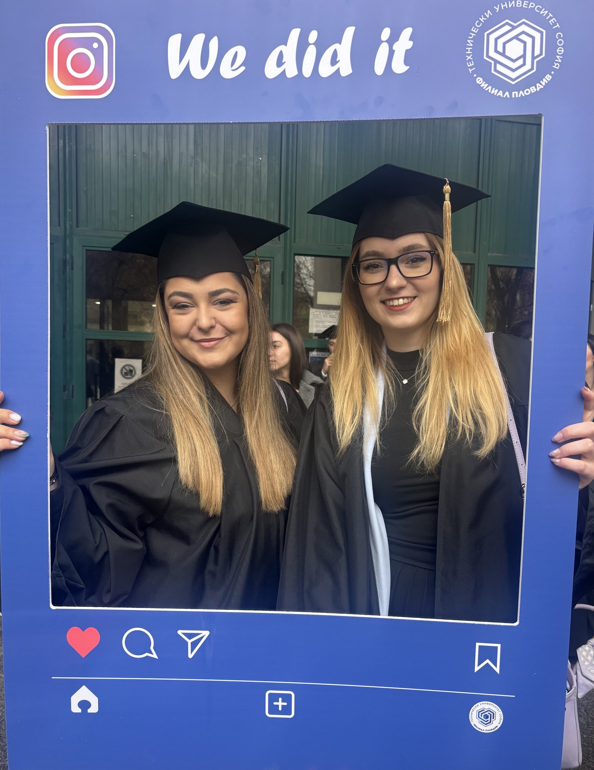 За още по-незабравими спомени от днешния ден, студентите от специалност „Дизайн и печатни комуникации“ изненадаха колегите си с атрактивни фото-рамки, които бяха на разположение на дипломантите и техните семейства. Прекрасните проекти са на Василена Пампирова, Мартина Михайлова и Гергана Телалова от IV-курс.