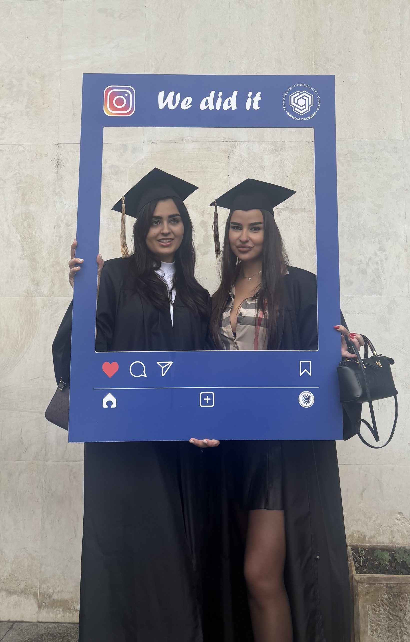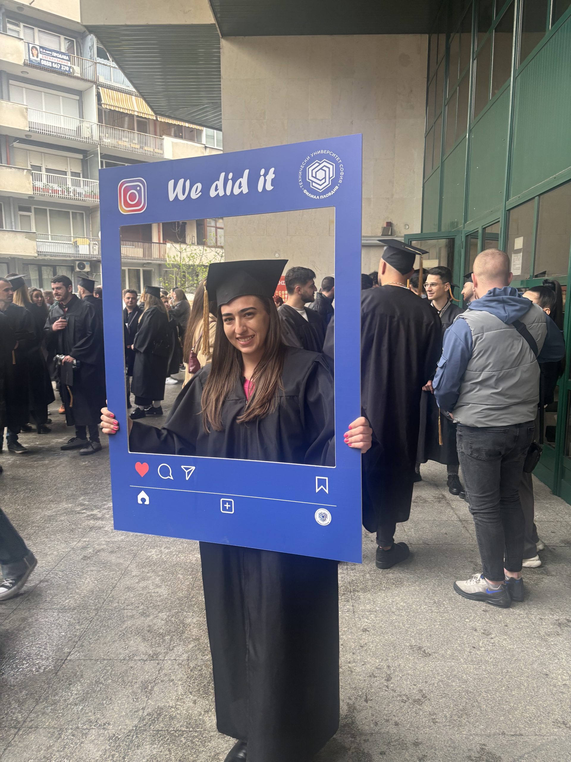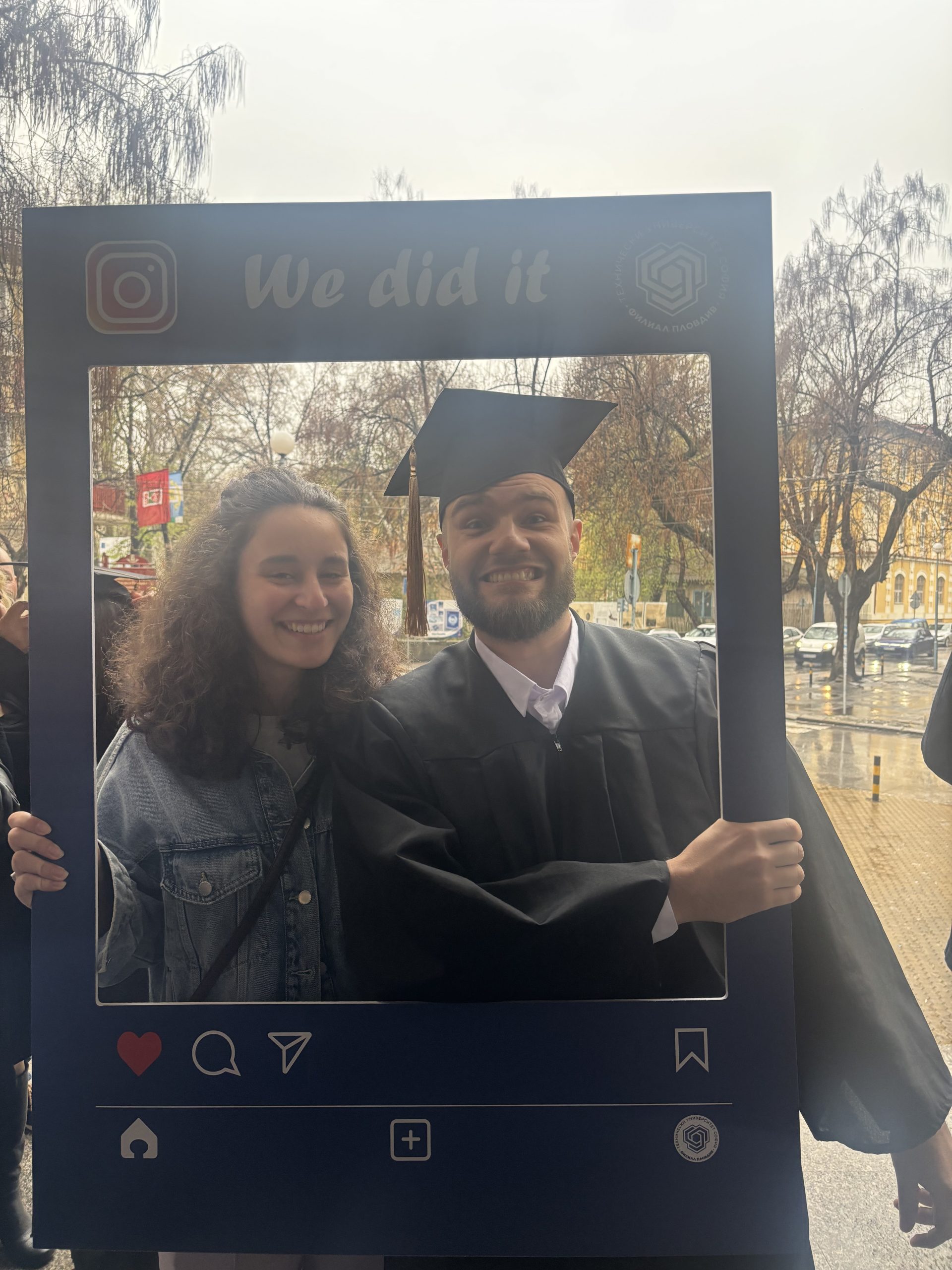 За още по-незабравими спомени от днешния ден, студентите от специалност „Дизайн и печатни комуникации“ изненадаха колегите си с атрактивни фото-рамки, които бяха на разположение на дипломантите и техните семейства. Прекрасните проекти са на Василена Пампирова, Мартина Михайлова и Гергана Телалова от IV-курс.